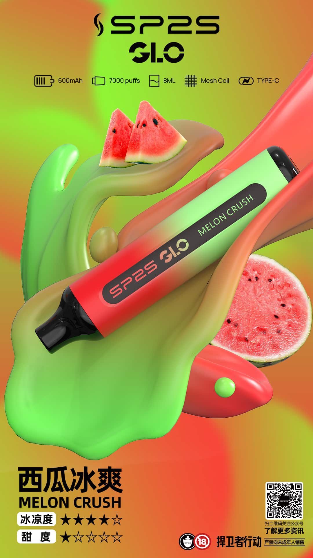 SP2S GLO 7000口電子煙以8mL大容量與15種口味打造,專為電子菸用戶提供持久清爽的吸食體驗!