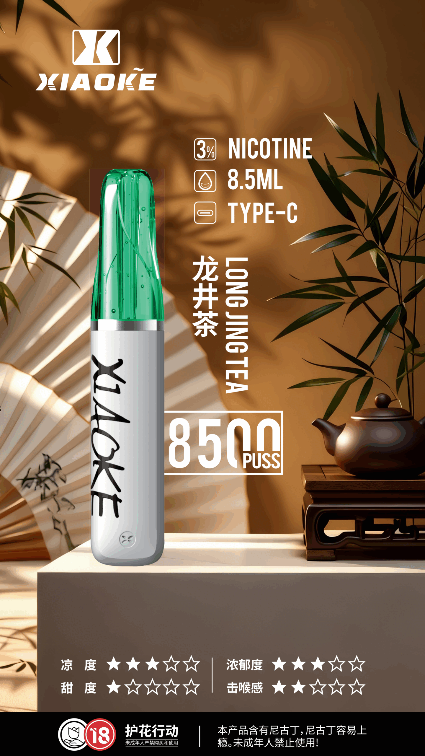 • 口數規格:約 8500 Puffs 大口數滿足長期使用